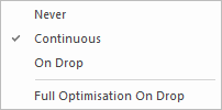 To set Optimisation during the component drag or move processes right click the mouse menu select Optimisation Mode The following options are available.