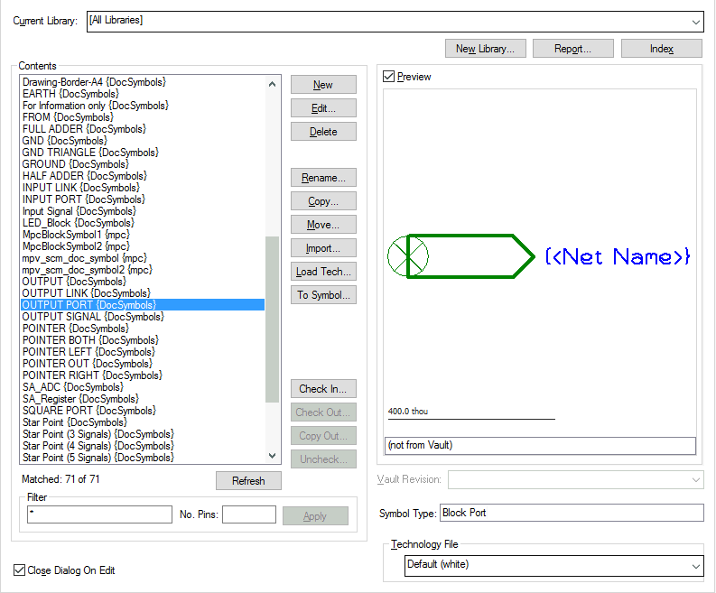 This page of the Libraries dialog provides access to Schematic Doc Symbol libraries, allowing you to view and edit the library contents.