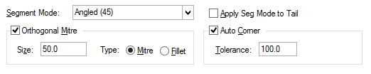 In Options, you must define a tolerance, which is the distance the cursor must move away in a perpendicular direction from the first segment you are adding before a corner is added. You can still click at any time to add a corner. It is recommended that the Tolerance is larger than any grid and mitre size you are using.
