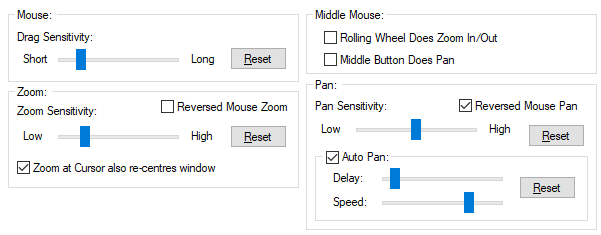 Sensitivity - Use this to tune the amount you want the window view to change when using the pan commands. Low means the view changes very little