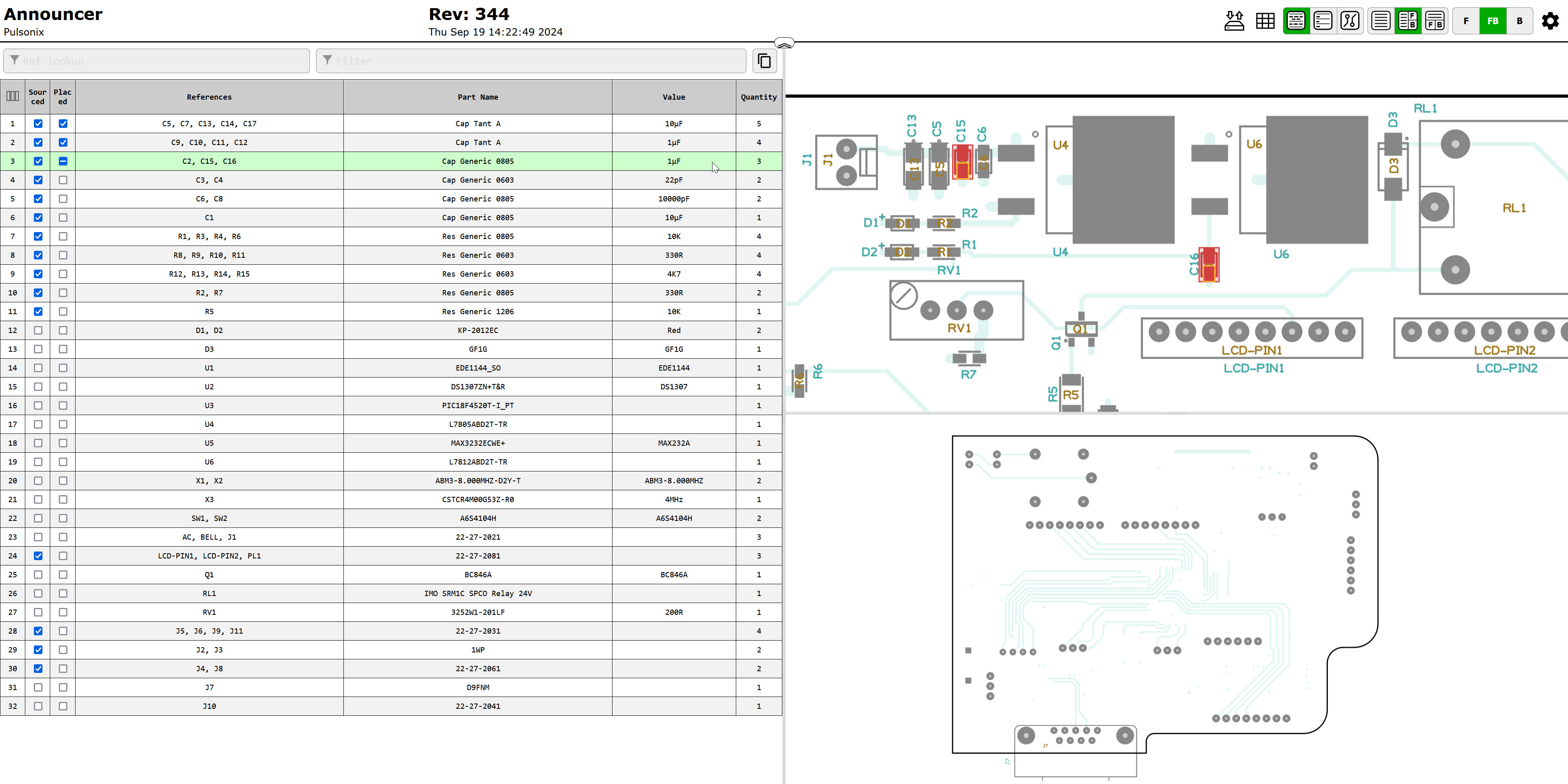 The Interactive BOM utility generates a bill of materials with the ability to search for components and locate them on a visual preview of a board using the InteractiveHtmlBom tool on your web browser. It is particularly useful for the hand assembly of prototype boards.
