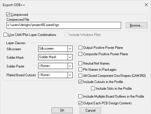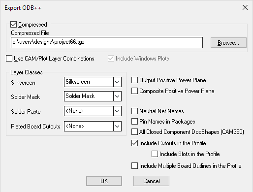 There are ODB++ viewers available so that you can check the output. Depending on the viewer you may have to change from the compressed to the non compressed form. You may also have to uncheck the switch Include Cutouts in the Profile if your viewer is an older one, see above.