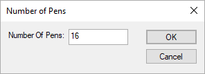 This dialog, which is accessed from the Pen Colour Setup dialog, allows you to define the number of pens available on your pen plotter.