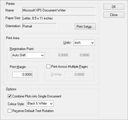 Check this option to allow printing over multiple pages. This will allow a single large plot to be spread across several sheets of paper, e.g. print an A2 plot across 4 sheets of A4.