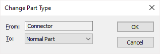 Changing a Connector part to a Normal part will remove its connector pin symbol but will leave the remainder of the part information unchanged.