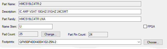 Note that there is also a Part Pin Count which shows the pin count the part will report for search purposes. This will normally be equal to the Pin Count, but could be less if you are using Ancillary Pads.