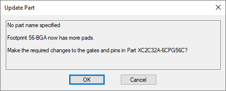 On selection, the libraries will be searched for the symbols and footprints that the part uses. You will be informed if any of these have had a change of pin or pad count, and given the option to automatically update the part.