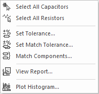 Define Component Value | Define Spice Type | Matching Components | Monte Carlo Tolerances | Random Probe | Set Device Tolerance | Simulation Parameters | Set Match Tolerance