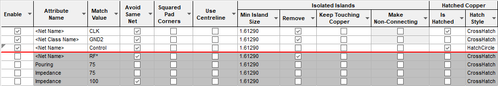 These parameters define how Copper Pour will behave. The Line Style is not defined here, but is taken from the Copper Pour Template to be poured.