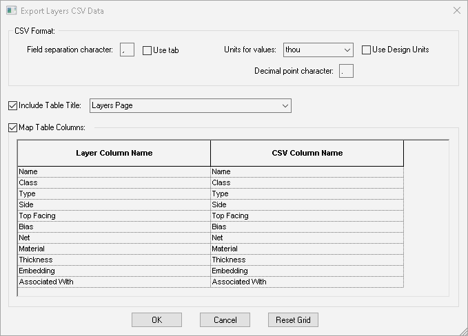 Reset Grid - This option resets the CSV Column Names to their defaults shown in the image above.