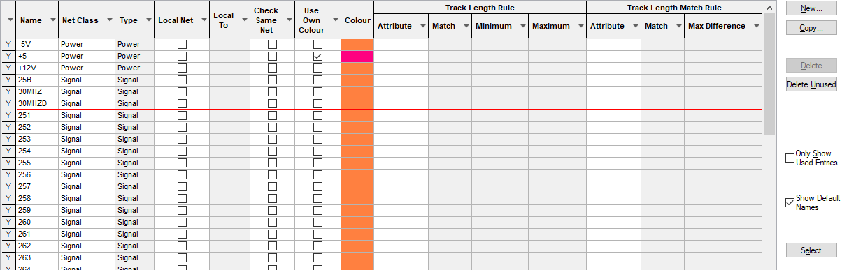 The Show Default Names check box is selected if you wish the Net Names list to include any default Net Names in the design