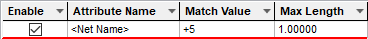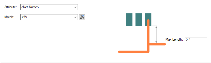 The appropriate Stub Routing Length rule is found for each net item by working down the list of rules until the first match is found. Hence, the order of the rules is important. A match is when the specified Attribute Name and Match Value match attributes of a net item. So the Stub Routing Length rule must have the given attribute, and it’s value must wildcard match the value.