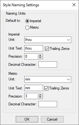 Default to: use these radio buttons to select Metric or Imperial Units for the Style Naming pages.