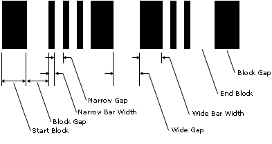You can specify various parameters. There is a start and end block, the Block Gap between these blocks and the barcode. The widths of the Narrow and Wide Bars can be specified along with the wide and narrow gaps between them. If you invert the barcode, gaps are drawn where bars were before.
