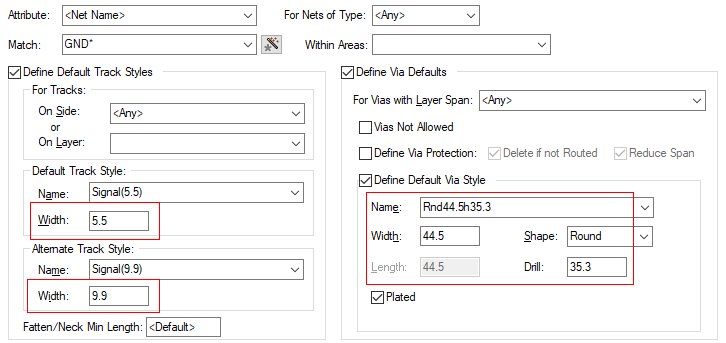 Matching settings in the Net Styles dialog for the nets requiring them will also be created using the new (or matched) Track and Via Styles.