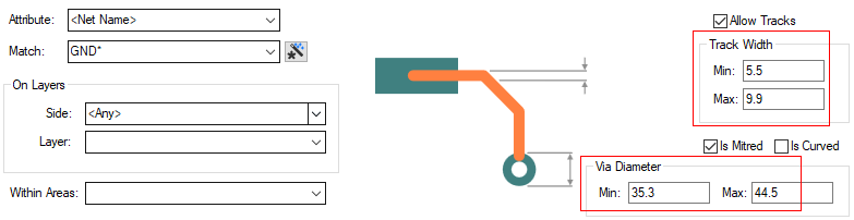 Track & Via Size Limit Rules