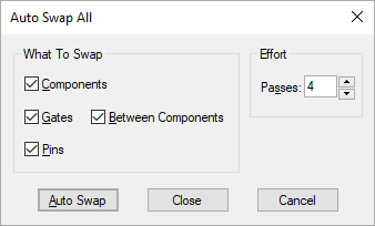 With this box selected gates can be swapped. Gates can be swapped with similar gates with the same swap group on the same component or with gates on other components using the same part. This depends on the Between Components check box.