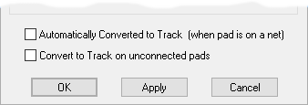 Convert to Track on unconnected Pads can be switched on to allow breakouts attached to pads that are not on a net in the PCB design to “automatically” be converted to tracks. For more information see Track and Via Breakouts. This option is only available in a footprint.
