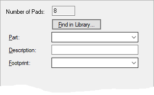 Part: this drop down list will present you with all the components in the design that match the Number of Pads reported above. By selecting one of these components, the pads/shape selection in your design will be replaced with this component.