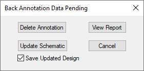 If you are using synchronise to update the schematic design, the Back Annotation dialog allows you to make these changes to the schematic first. You may want to do this because changes such as gate swaps are more efficiently applied to the schematic this way. Otherwise, the general compare and update phase will make equivalent netlist changes.