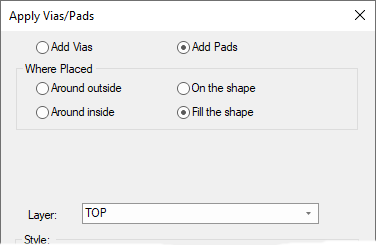 - Fill the shape means cover the interior of a closed shape with vias or pads.