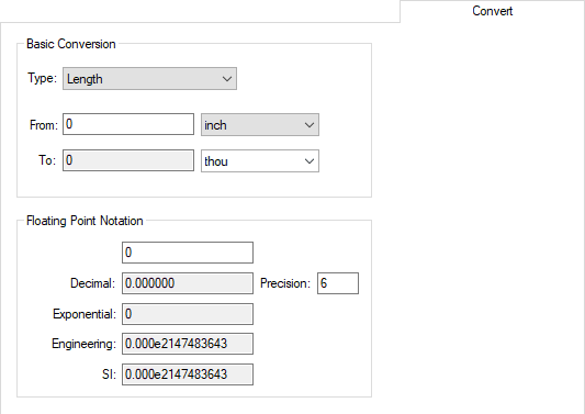 The converted value will be displayed in the To edit box. It will also be entered automatically into the Floating Point Notation edit boxes to show the value using different numeric notations.