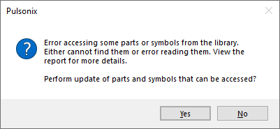 Press Yes to perform the reload on the parts and symbols that can be found in the libraries. Press No to abort at this stage.