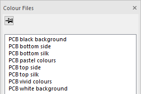 This modeless dialog is displayed as a configurable Dockable Window containing a list of all the available Colour Files that may be applied to the current design.