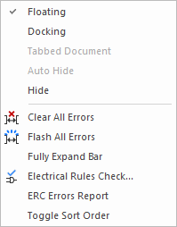 Use this to view all the electrical error makers as a sorted list. This list is displayed in an ‘active’ browser which, by using a double-click to select, and be used to locate the error maker in the design. This browser can be un-docked as a modeless dialog or docked as part of the Pulsonix framework. Use the right mouse button to make this selection.