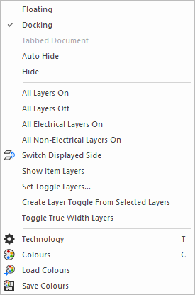 This is available if an electrical layer is currently selected. Use it to set the default track, copper and template layers.