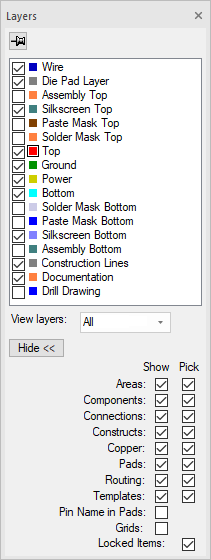 Use the View Layers list box to select layer types to display in the Layers list. The list box allows you to select between All, Electrical and Non-electrical layer types.